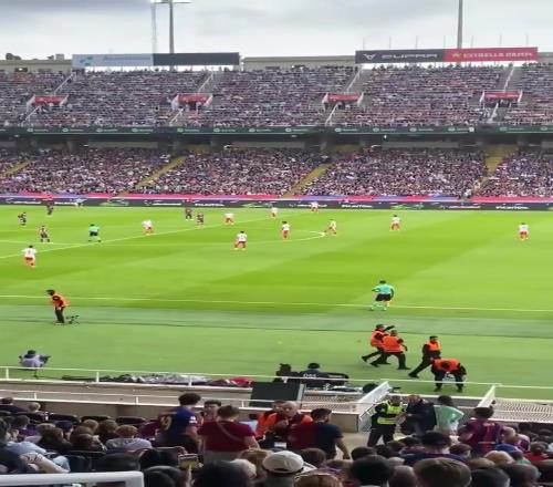 又掩耳盗铃!巴萨vs赫罗纳开球15秒“静站”抗议,转播切球场远景
